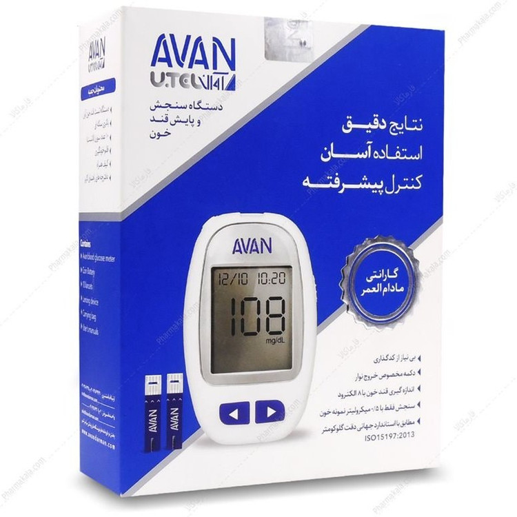 دستگاه تست قندخون آوان همراه با 10 عدد نوار تست قندخون